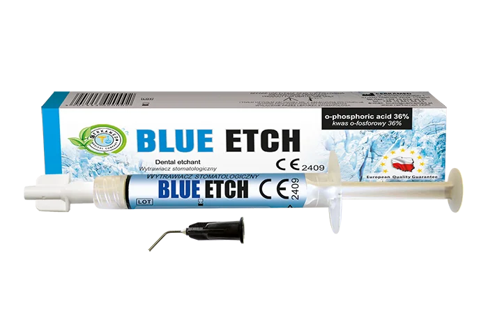 El producto BLUE ETCH se utiliza para grabar la dentina y el esmalte antes de aplicar composites, selladores de fisuras y selladores de caries.