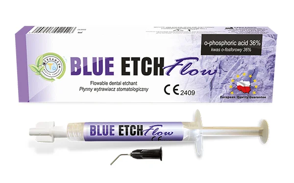 BLUE ETCH FLOW se utiliza para grabar fisuras en la dentina y el esmalte antes de aplicar composites y selladores de caries. Gracias a su consistencia semisólida cuidadosamente formulada,