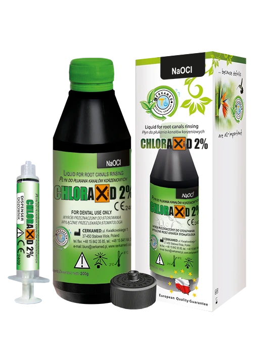 hipoclorito de sodio (2 % de cloro activo), agua purificada conforme a la Farmacopea Europea.